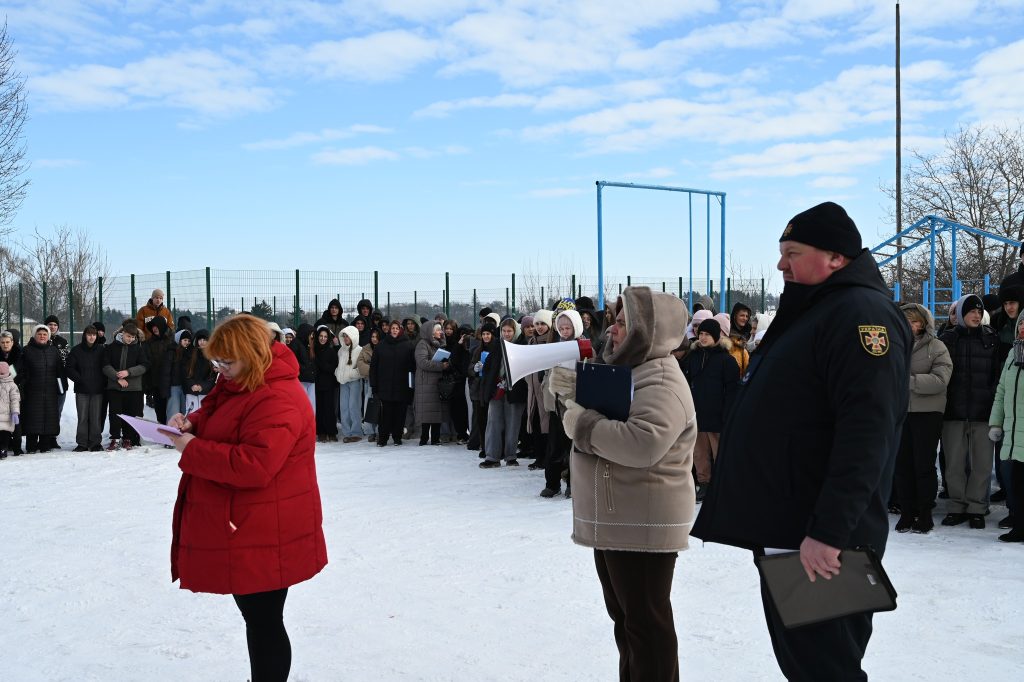 Під час навчання учням роз’яснили, як діяти у разі сигналу про небезпеку, відпрацювали алгоритм швидкого реагування, провели безпечну евакуацію з приміщення школи та наголосили на важливості збереження спокою й чіткого виконання вказівок педагогів, правоохоронців та працівників ДСНС.