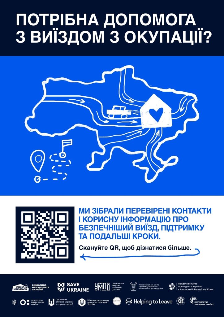 Якщо ви тільки плануєте виїзд — звертайтеся. У межах ініціативи Bring Kids Back UA допомагають виїхати безкоштовно, конфіденційно та з повним супроводом — навіть якщо немає документів. Для кожного підбирають безпечний маршрут.