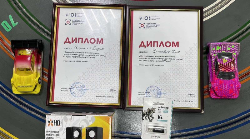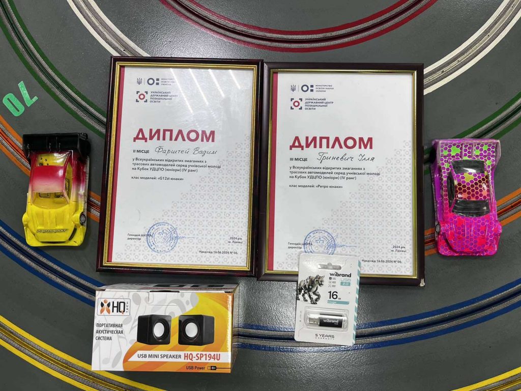 За підсумками Всеукраїнських заходів зі спортивно-технічних видів спорту сезону 2024 року, в яких вихованці закладів освіти України стали переможцями, Український державний центр позашкільної освіти нагороджує Гриневича Іллю (ІІІ місце у Всеукраїнських змаганнях з трасових автомоделей) та Фарштея Вадима (ІІ місце Всеукраїнських змаганнях з трасових автомоделей) цінними подарунками. Вітаємо юних спортсменів!